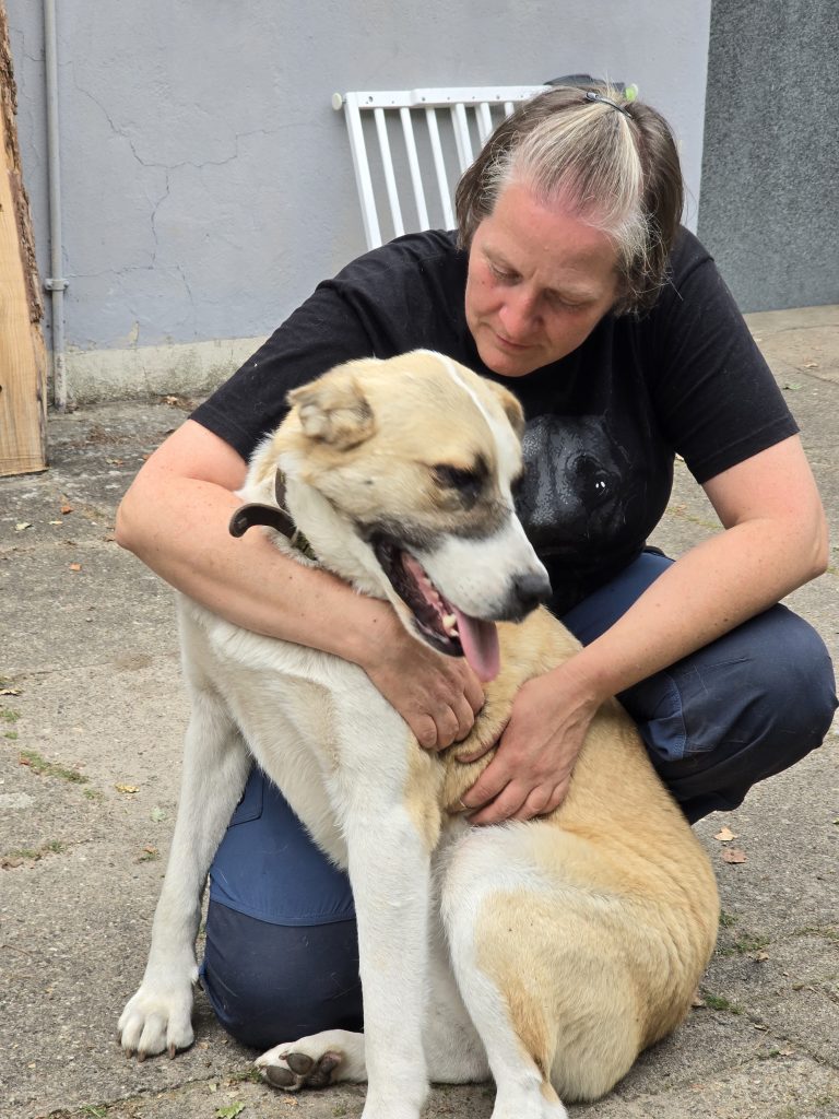 Amy kam im Mai 2024 zu uns. Sie wurde zusammen mit Ajax von Privatleuten direkt aus Rumänien nach Deutschland geholt, wo man dann nach einer Stunde feststellte, dass es mit der schon im Haushalt lebenden Hündin nicht funktionierte…