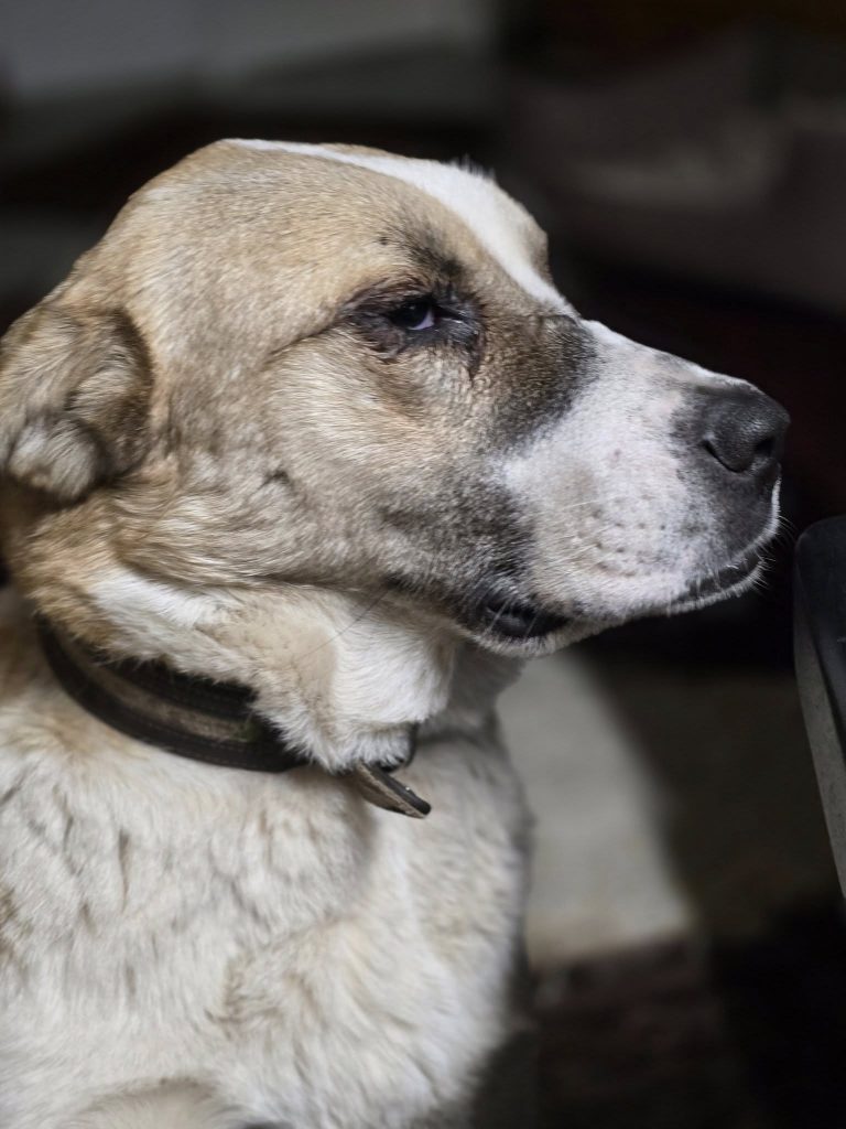 Amy ist eine ausgesprochen liebe Hündin von etwa 30 kg, ein Ohr wurde teilweise abgeschnitten, eine Narbe wie von einem Schnitt zieht sich über ihre Nase, die Rute ist zum Teil koupiert. Wir vermuten, es handelt sich bei ihr um einen Alabai, einen zentralasiatischen Owzcarka, aber sie hat überhaupt nichts von einem Herdenschutzhund, wurde deshalb vielleicht in Rumänien ausgemustert.