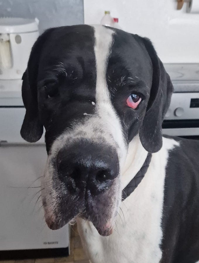 Aron ist nun in unserem Tierheim mit Familienanschluss zuhause! Eine Dogge kostet natürlich viel Geld, daher sind wir für jede Unterstützung dankbar.